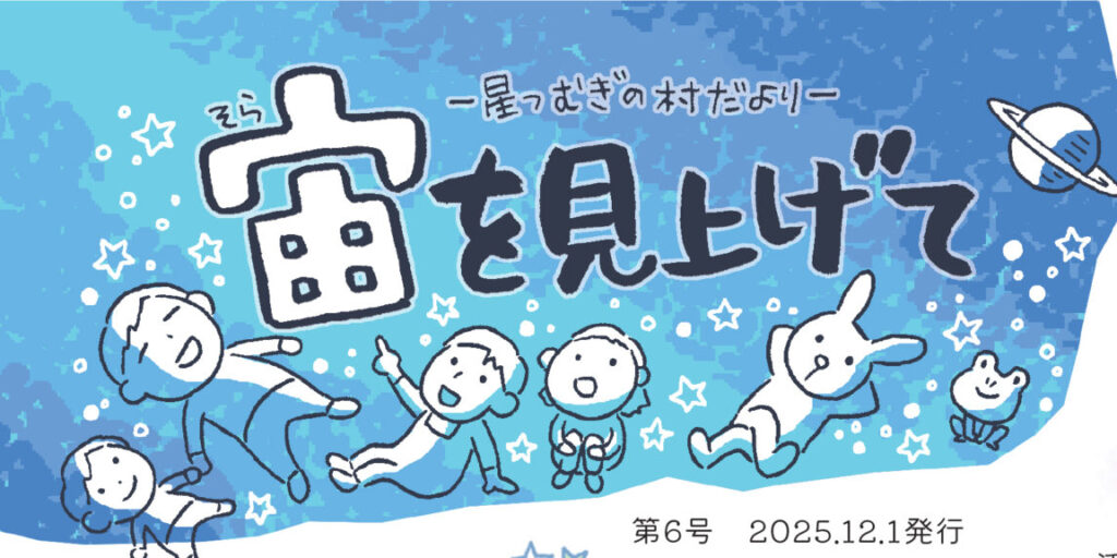2023年夏より、星つむぎの村だより「宙を見上げて」を発行しています。 第6号として、2025年12月に発行しました。 ご支援者の方々や村人には、紙面でお届けしています。 星つむぎの村の雰囲気を感じていただけたら幸いです…