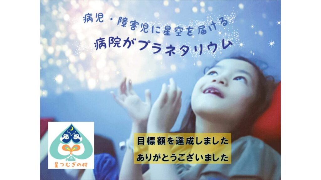 お金をまわそう基金において、目標額が達成いたしました。 寄付キャンペーン中のご支援は、別の方法でお願いいたします。 病院がプラネタリウム年末「8for 1」寄付キャンペーン実施中!期間: 2025年12月1日~31日8人…