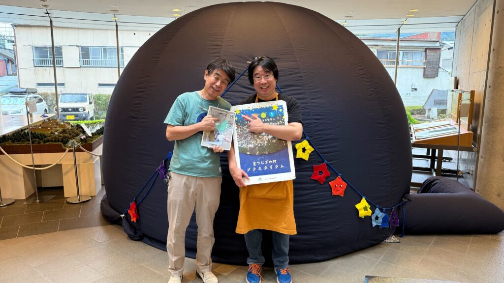 8月3日(日)は、山梨県都留市の地域歴史博物館「ミュージアム都留」に4mドームを持って出張に行ってきました。 ミュージアムのエントランスの広場に4mドームを設置して投影。村人は跡部、高木、レポートは高木りょっぴぃです。 …
