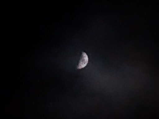 雲に邪魔されながらも望遠鏡で見る上弦のおつきさまに歓声が上がっていました。