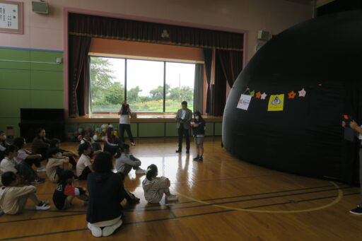 9月29日(月)は、森町立鷲の木小学校に7mドームをもってお伺いしました。前日のスペースファンタジーライブを呼んでくださった中條先生からの紹介。