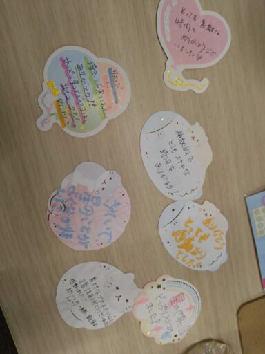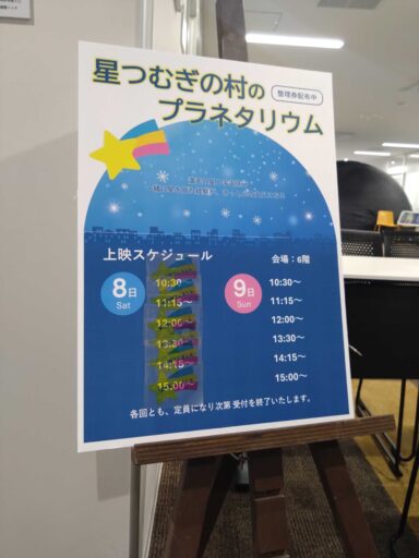 1日目は142人来場、プラネには72人と半分近くの方に入っていただきました。2日目もプラネは満員御礼で、雨にもかかわらず300人以上が来場されたそうです。東村山に来ていた高校生ボランティア部の女の子が1人、興味があると朝から来てくれて、1日体験村人、のような形でいてくれました。その他ユニウェーブ側のボランティアさんも各日3人ほど入ってくださいました。2日目には叶さんがかけつけてくださって、久々にお会いできました。また、荷運びなどおもちゃのコーナーに来ていた薗頭さんに気にかけていただきました。用意していただいた整理券ボードのかわいいこと!感想を書く用のかわいいメッセージカードもサプライズでご用意いただき、皆さんからの感想もいただきました。