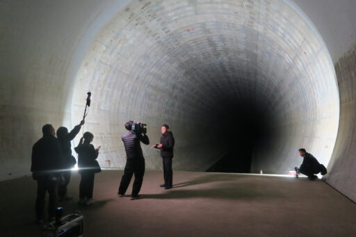 星つむぎの村人であることもさながら、防災士としても興味深く、参加しました!地下調節池というのは、大雨の時でも、水害にならないために、川の水を貯めておく巨大水道管のようなトンネルです。この調節池を取り巻く施設見学のプログラムの最後に行われたプラネタリウム。トンネルの湾曲と高さ12.5mの大きさを活かした投影で、普段我々が使っているドーム(5mと7m)よりも、さらに迫力のある演出になっていました。今回は「地下調節池の見学」というイベントの特性上、参加された方の多くは大人で、お子さんも割と大きなお子さんが多かったのですが、プラネタリウムの中で皆さん、呼びかけに応えてくださり、素敵な会になりました!また、メディアの取材も何件か入っていました。午前の部では、TBSさんがいらしていたので、りょっぴぃさんがラストマンの福山雅治さんのモノマネを挟むシーンもあり、大盛り上がり??でした笑プログラムの終わりには、フジテレビさんがおいでになり、夕方の情報番組「イット!」のワンコーナー「ソナエちょい先」の収録に協力させていただきました。星つむぎの村のプラネタリウムをきっかけに、調節池について分かりやすく教えてくださっています。