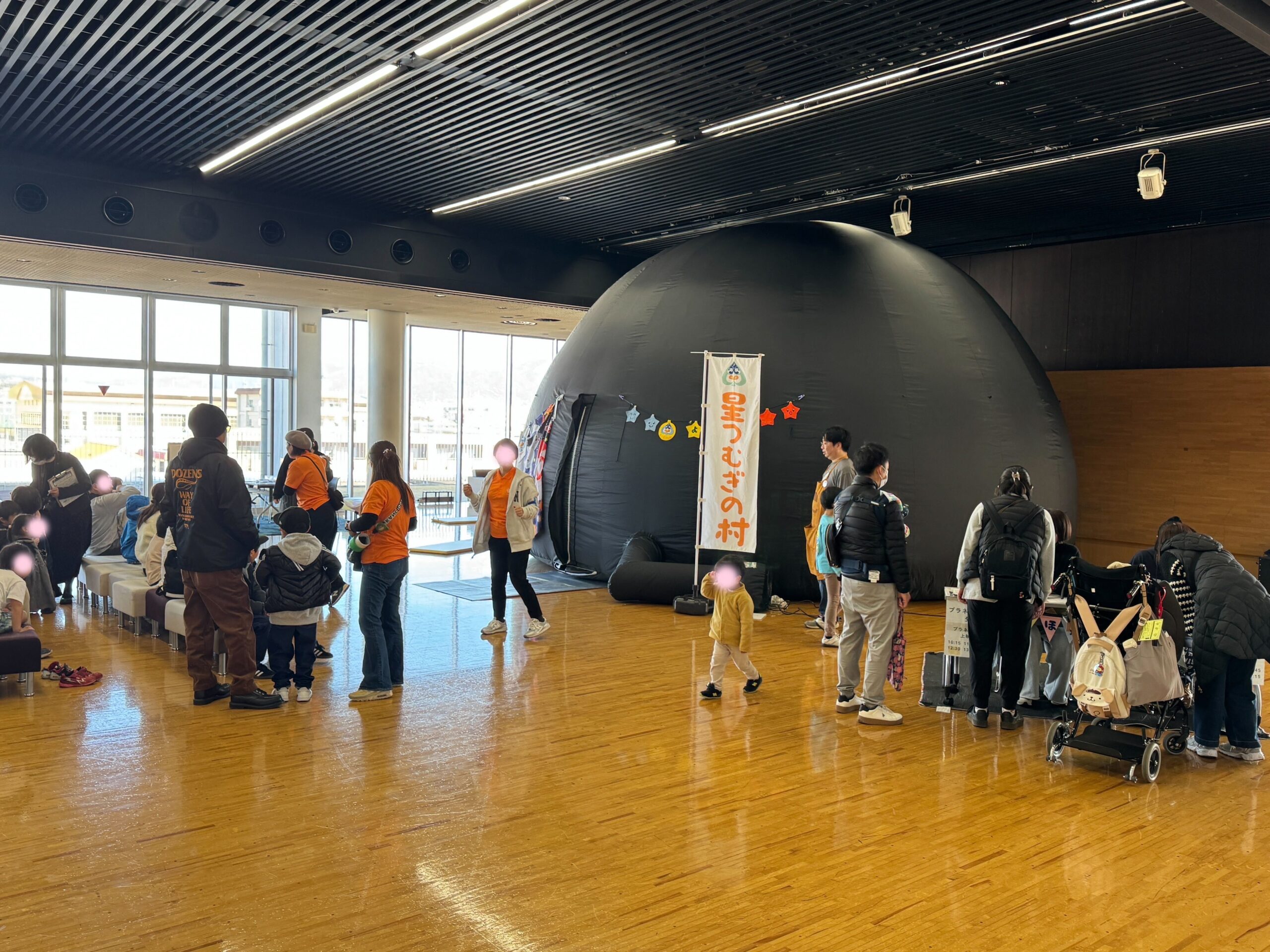 このイベントは、子育て応援イベントとして、親も子も楽しめる内容を目指して開催されたイベントで、コロナ後の復活開催との事です。イベントの主な内容は、・プラネタリウム上映(私たちがメインイベントとの事です)・ワークショップ(子育てサークルや私立幼稚園協会)・行政出展ブース ・保育園・幼稚園相談等(こども未来創造課)・発達相談・身体測定(健康づくり課)など・救命救急講座・親子わくわく運動遊び(ちあーず)等です。