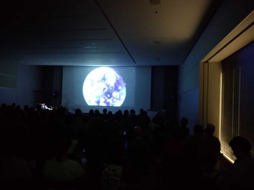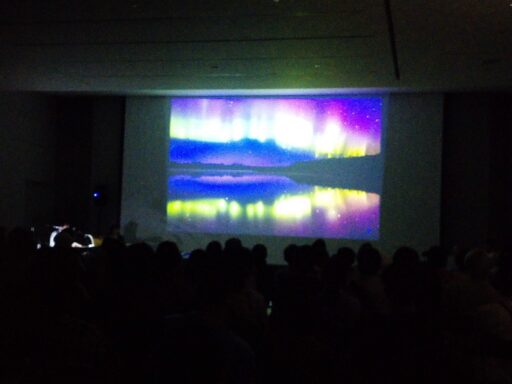 善光寺のお隣、長野県立美術館の地下ホールにて。2公演とも、立ち見が出るほどの大盛況。いつもと違って大人多めのイベントになりました。真人さんと晶子さんの楽しい音遊びから始まって、スクリーンプラネタリウムのしっかり1時間の見応えのあるプログラム。オーロラ多め?にきれいな音楽と合わさって、大人の方々には癒しの時間になったのでは。ちっちゃな赤ちゃんもいたけれど、1時間の間ほとんどぐずることもなく、ママに揺られながらじーっと星空を見てました。今回はお祭り&観光地ということもあり、県外からのお客さんもたくさんいました。石川県から来て、星つむぎの村のことを知ってくれてた方も。終わった後にみんなで善光寺参りに行ったときは、たまたま公演を見てくれてたご家族が声を掛けてくださり、ロケット楽しかった!と。いつもの病院などとは少し違うプラネタリウムでした。