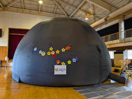 すぐ隣にいらした女性は、私の言葉を繰り返し声に出してくださり、でもときどき、かわいい、きれい、すごい、とご自分の言葉も挟み込み、一生懸命ごらんになっていました。投影前は大きな声を何度も出されている方は、ドームにはいったらずーっと集中して、大きな声を一度もださずにいたので、スタッフさんがびっくりされていました。前回のことをよく覚えていて、星をみるんだ、宇宙に行くんだ、それをすごく楽しみにきたのだと何度も手をあげて発言してくださっていた方もいました。出たり入ったり、自由な感じも多々あり、それも含めて、星つむぎの村のプラネタリウム、あってよかった、ってみんなに思ってもらえた時間だったと思います。