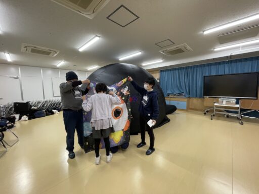 午後1回目の投影の時、スタッフの皆さんにも体験していただきました。その中のお一人が、ドームから出てきたときに涙を流されていたのが印象的でした。理由はわかりませんが心に刺さるものがあったのでしょう。