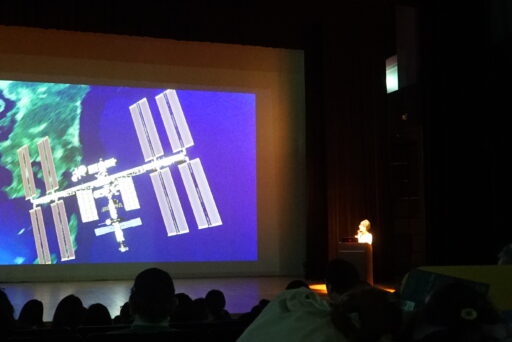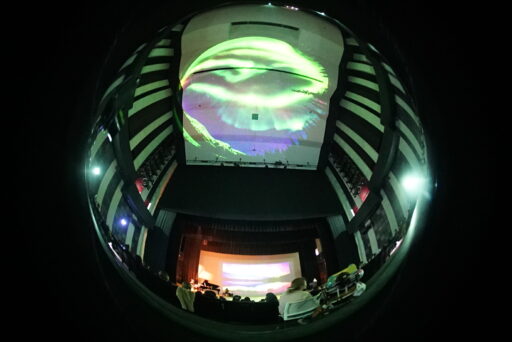 第二部はホールの舞台全面と天井に映し出された宇宙に感嘆の声が響き渡りました。真理子さんの宇宙の星座や惑星の説明と、真人さんのピアノ演奏が一層、壮大な宇宙と命のつながりと感動を来場者お一人おひとりに、お届けできた時間だと思えました。
